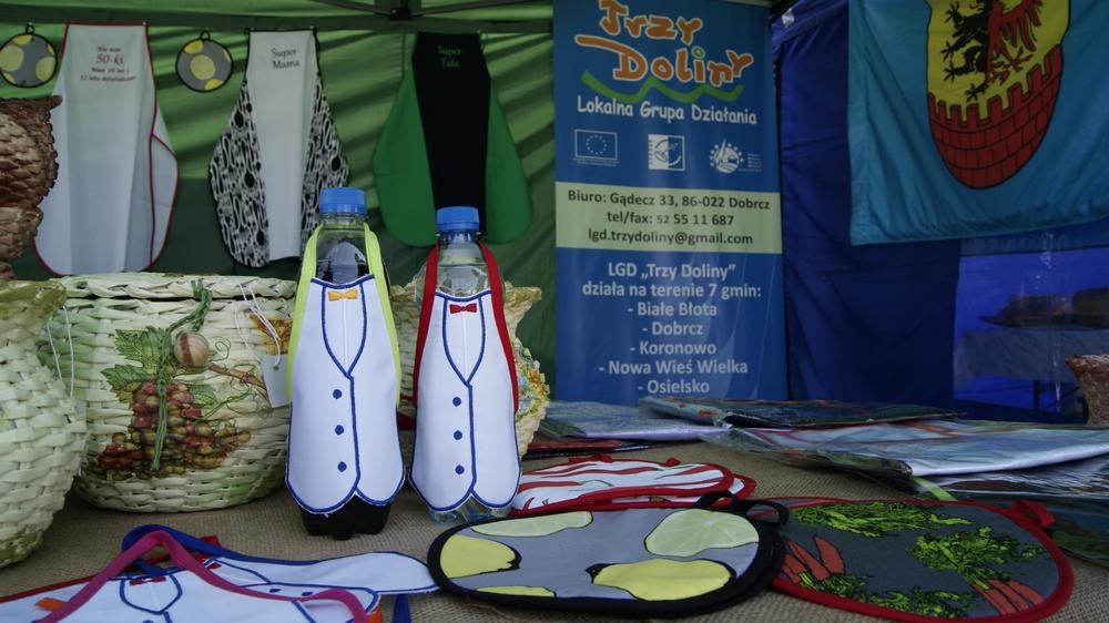 W niedzielę 11 września, mieliśmy debiut podczas Jarmarku Kujawsko-Pomorskiego. Dzięki uprzejmości gospodarza terenu,  Pani dyrektor Bożeny Hennig  wystawiliśmy po raz pierwszy na Jarmarku Kujawsko-Pomorskim w Myślęcinku stoisko, gdzie promowaliśmy produkty mieszkańców naszego regionu oraz informowaliśmy mieszkańców o tym jaką rolę na obszarach wiejskich pełni Lokalna Grupa Działania ,,Trzy Doliny”. Tu, na jarmarku,  najwyraźniej widać, jak bogatą ofertę może zaoferować wieś i jak tego są spragnieni ,,mieszczuchy”. Zgodnie z tą zasadą LGD ,,Trzy Doliny” przygotowało odpowiednią ofertę.  Były smakowite placki ziemniaczane z konfiturą serwowane przez  młode, sympatyczne dziewczyny z Gądecza ( od p. Uli Mele ), były degustacje nalewek domowych z Solca, w których rozsmakowało się wielu koneserów dobrego, domowego  trunku oraz zdobywające coraz większe uznanie gospodyń domowych, dżemy owocowo-warzywne wytwarzane w  gminie Osielsko. Nie zabrakło również wyrobów rękodzielniczych, które cieszyły kolorami i precyzją wykonania. Nie zabrakło również miodów , gęsiny i pierogów.Cieszy fakt, że na jarmarku była widoczna bardzo mocna drużyna naszego regionu. Szczególnie wyróżniała się gmina Dobrcz ze stoiskami z naszego zagłębia śliwkowego czyli Strzelec Dolnych, Gądecza, Strzelec Górnych, Dobrcza.